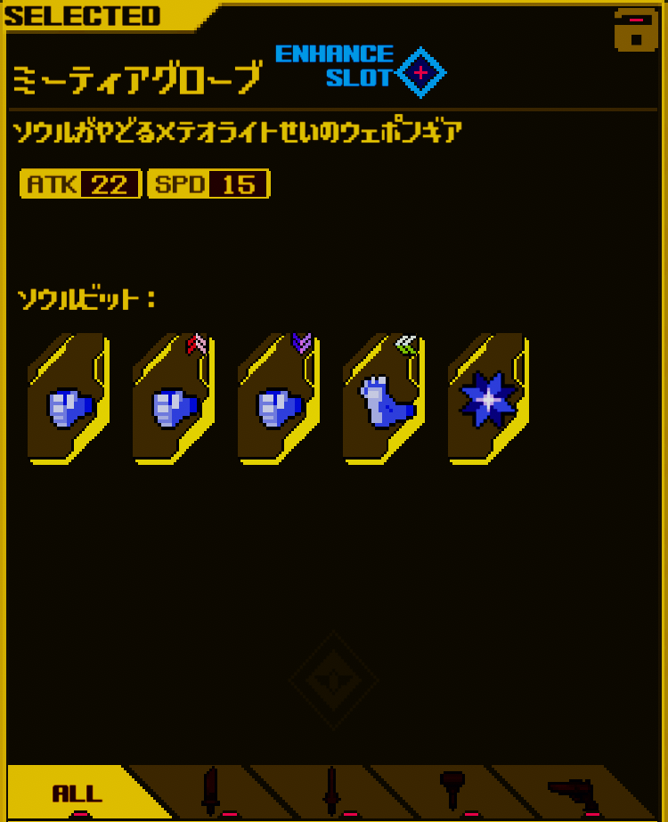 ランダムでステータス・ソウルビット・エンハンススロットが付与されるようです。